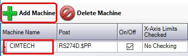 You can give each machine set-up an name, and then select the post processor to be used for that set-up and change the X, Y, and Z settings and whether or not to scan each axis for problems.