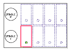 EXAMPLE: Make 8 parts using spindles 1 and 2 using ½" end mill in each spindle.