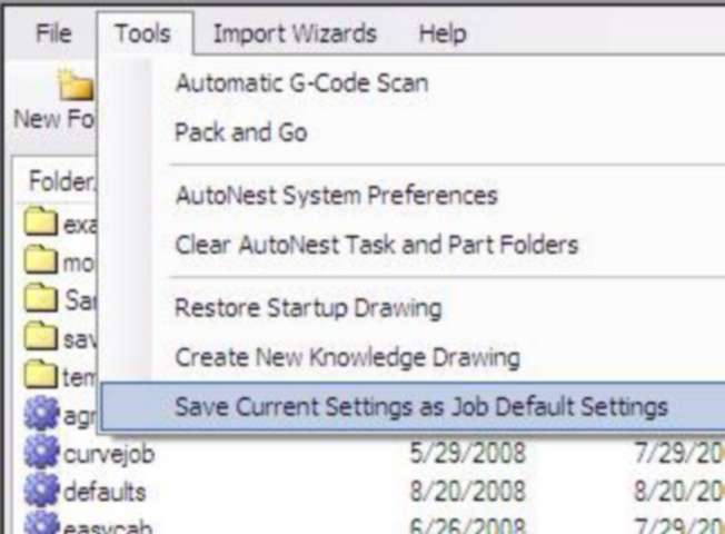 Then pick Tools pull down, and Save Current Settings as Job Default Settings