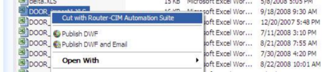 5) Right click on an XLS or XLSX and pick 'Cut with Router-CIM Automation Suite'